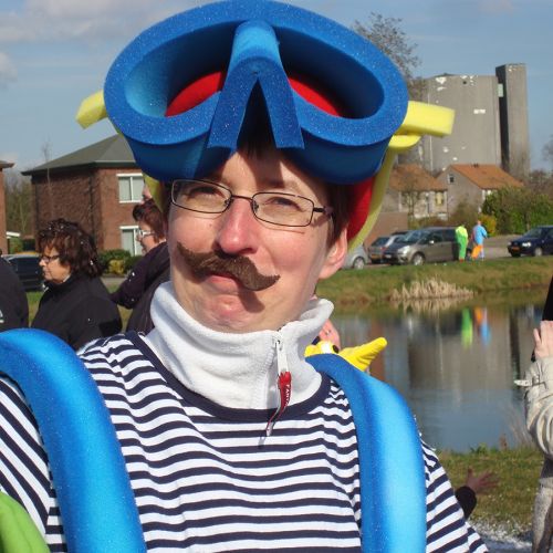Steeds minder braaf. Creatief talent op de foamzolder. Aantal jaar geleden rode broek met succes ingeruild voor een blauwe. Staat haar mannetje. Neemt als hulp haar halve familie mee naar de Leutfabriek. Studeert bij de Ventjes voor kapster.